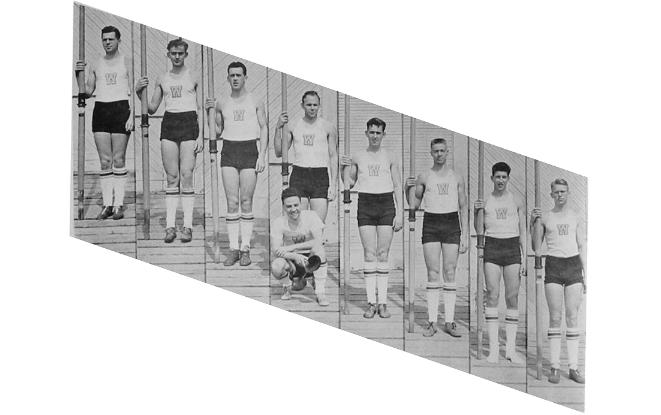 This varsity crew was undefeated and winners of the first 2000 meter national championship in 1933. Tyee photo.