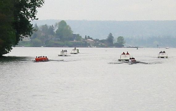 men's varsity as the crews enter the Montlake Cut. Guy Lawrence picture.