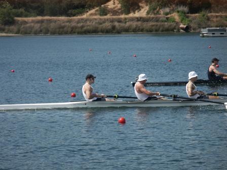 | The varsity after putting on the brakes. | The JV's pull away on the sprint. | The JV's celebrate victory. |