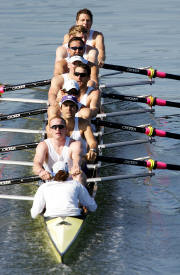 Historical perspective: Washington has swept the eights at the IRA for the 6th time. They were the first University to do it in 1936 (had not been done before that year), repeated again in '37, swept in both '48 and '50, again in 1997 and now 2009. Checking Tom Mendenhall's A Short History of American Rowing and the Rowing History website, Cornell is the closest with three sweeps in '54, '55 and '58; Navy did it twice in '52 and '65; Penn did it in '68, Wisconsin pulled the trifecta in 1973, Brown did it in '94, and Princeton in '96. Results from the fours in '94 and '96 are not presently available so at this point we can not definitively say whether this is the first ever sweep with a fours victory (although it is for Washington), but certainly the sweep in 2009 is up in the rarified air of Collegiate Rowing competition.